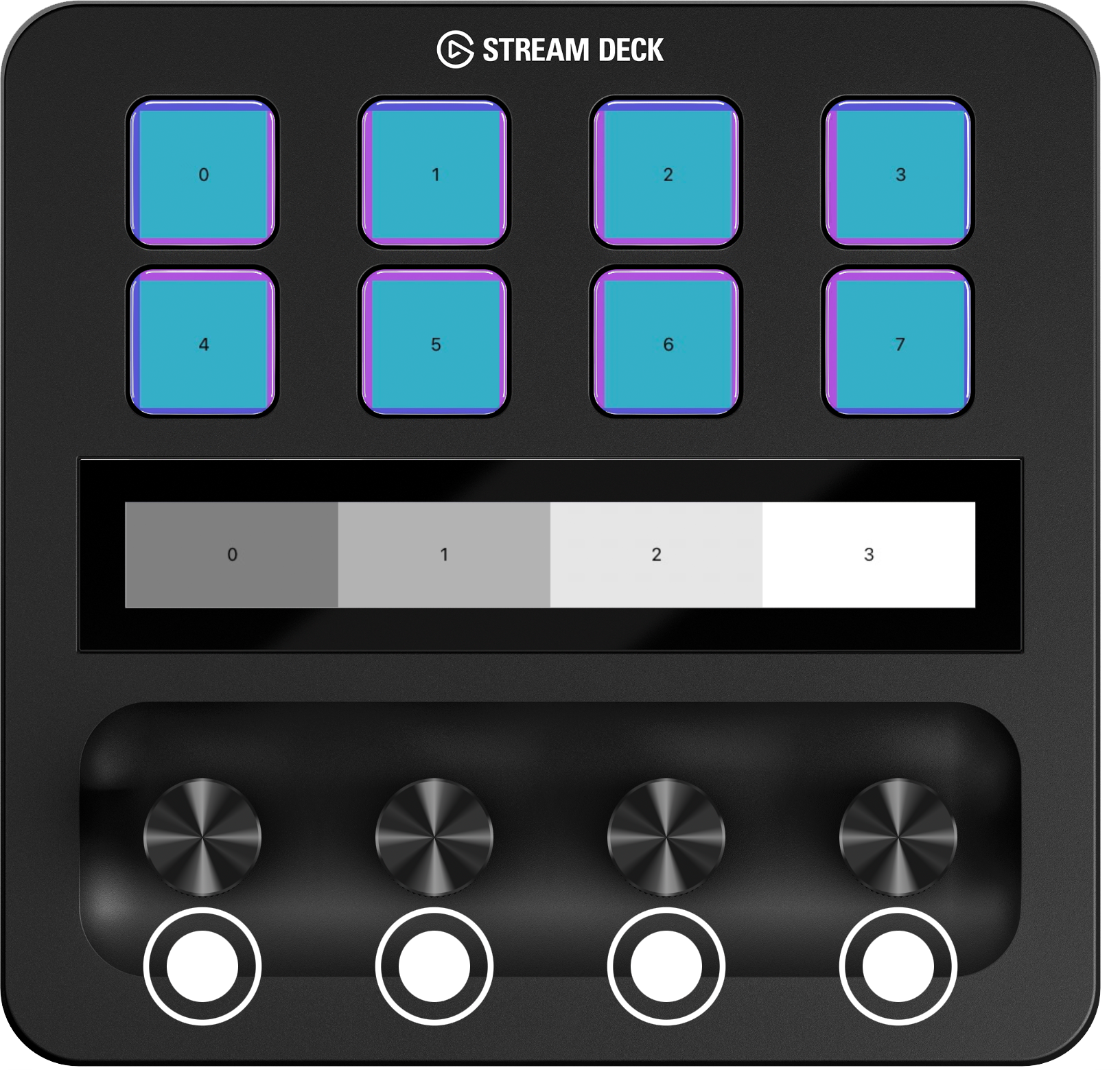 | Neo | ![]() Note: On the Stream Deck Neo device, you can not set images to the two touch key areas directly. However, you can change the appearance of these by changing the background. | ![]() |