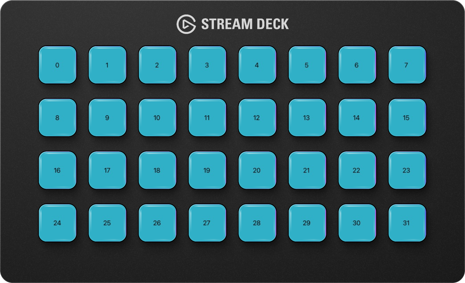 | Mini | ![]() Note: On the Stream Deck Mini device, you can not set a complete screen image. However, the purple background on the key area would be visible if the keys had transparent areas. | ![]() |