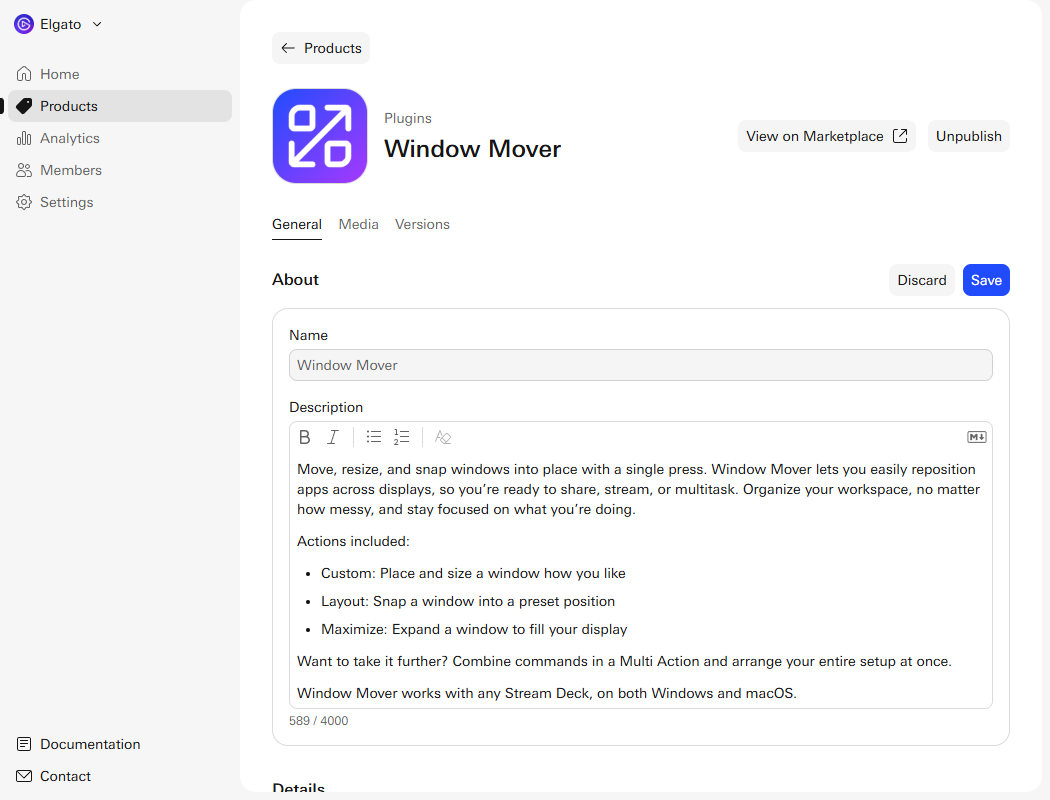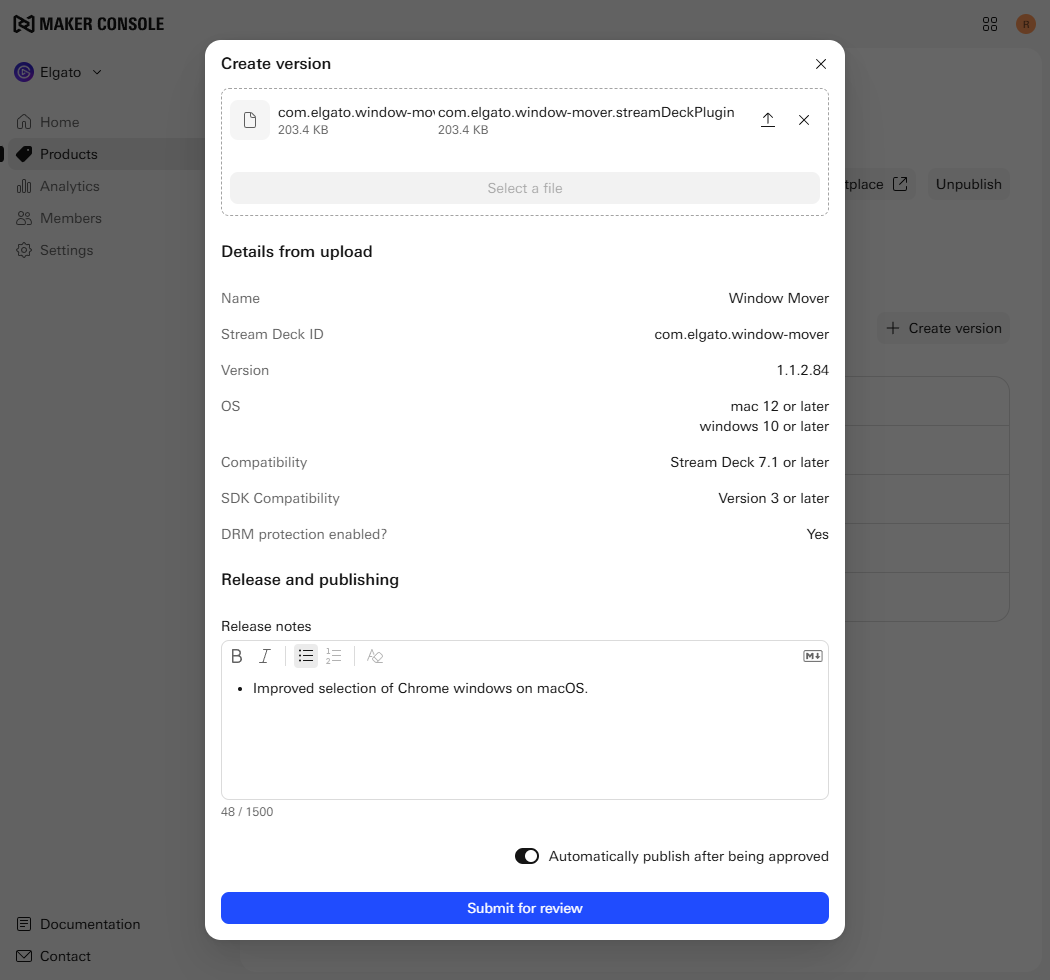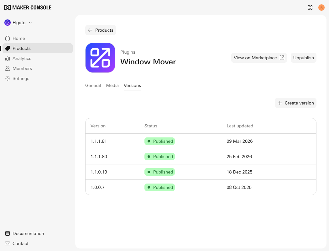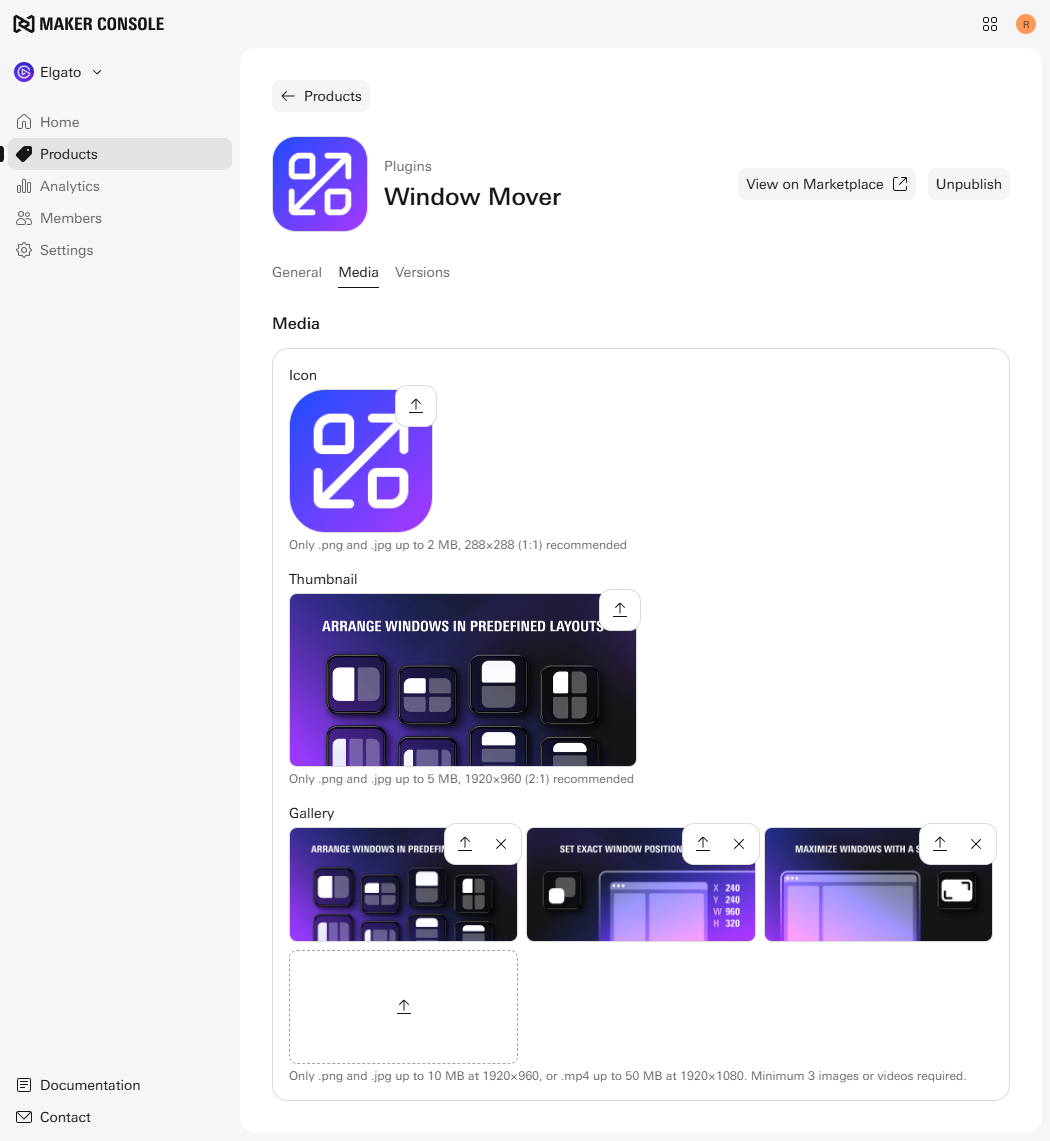 Your products available on Marketplace are managed through Maker Console; here you can update the metadata, media images, submit new versions, and more.