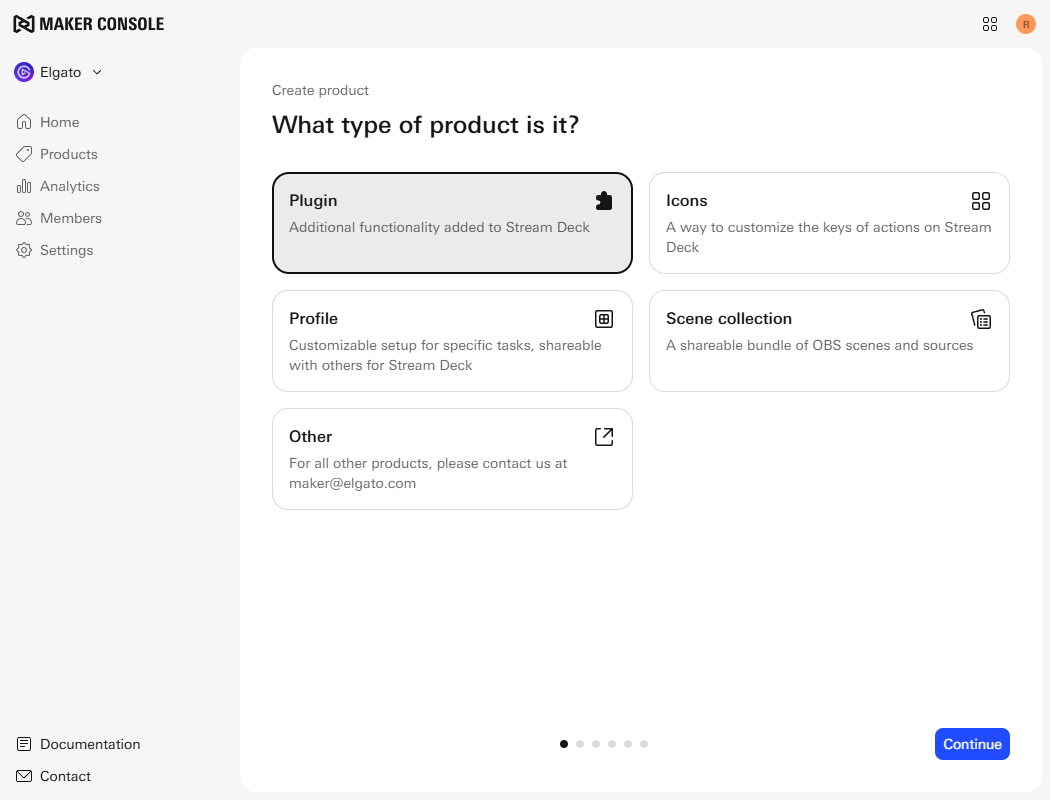 Select your product type, for example Stream Deck plugin.
