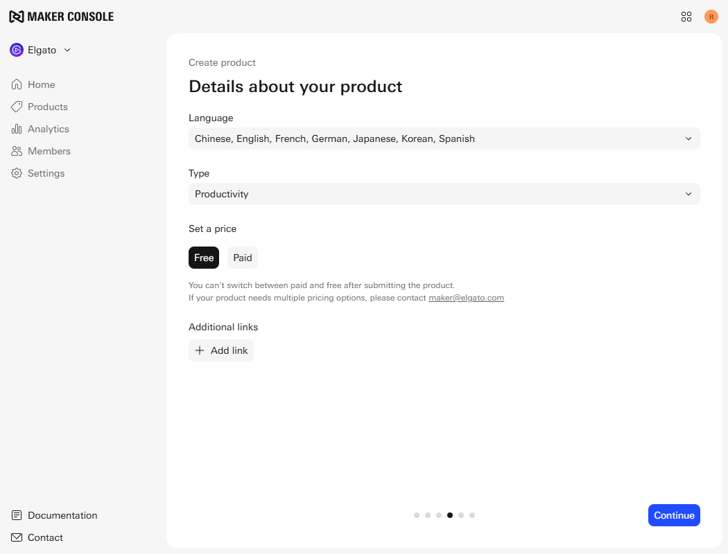 Set the tags, pricing, and additional links — for products such as Stream Deck profiles and icons, tags allow you to specify the supported devices and operating systems, as well as tell users more about your product, such as theme and color etc.