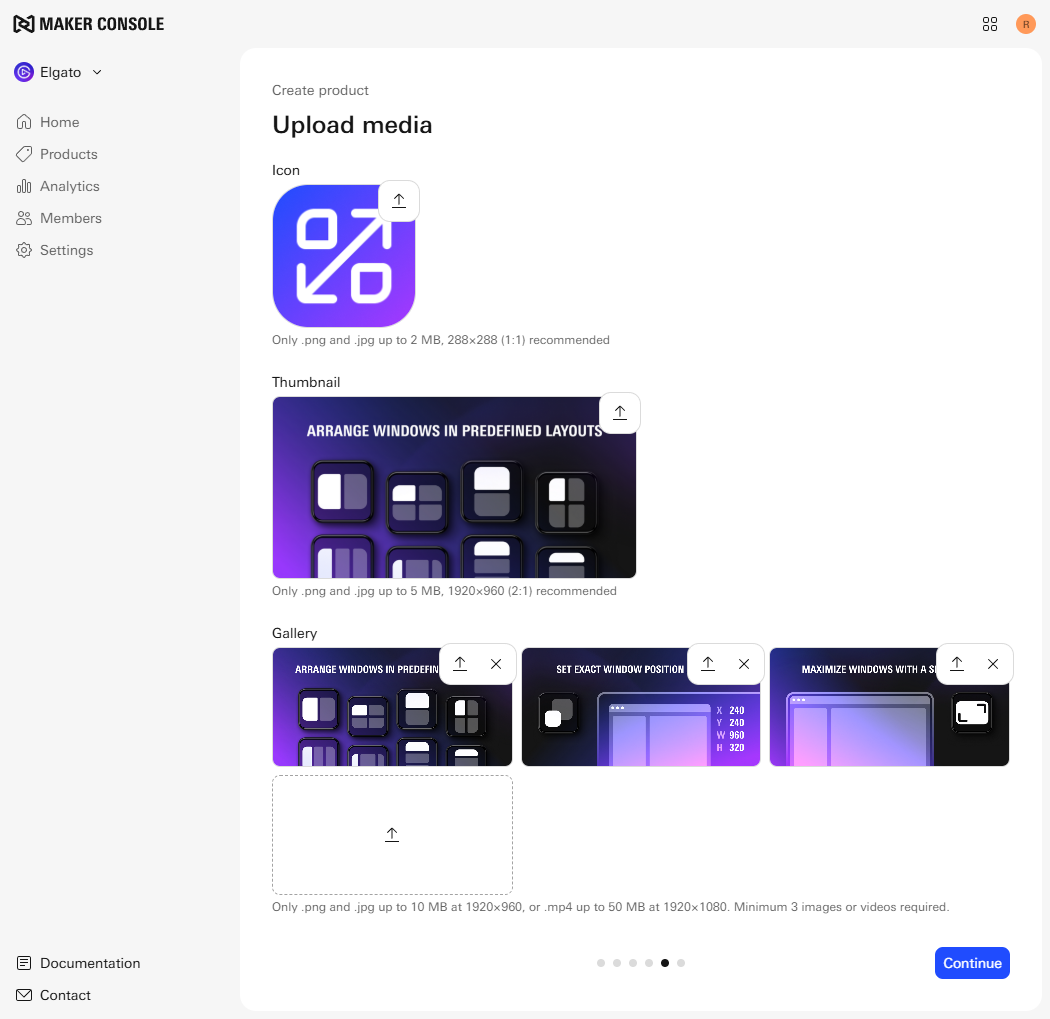 Upload your product's media including thumbnail and gallery items, and app icon (Stream Deck plugins) and icon previews (Stream Deck icons) where necessary.