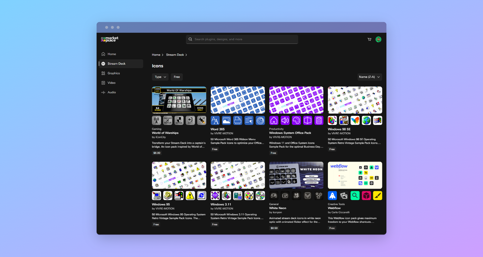 You can distribute your Icon Pack on Elgato Marketplace or host it yourself. On the Marketplace, your Icon Pack becomes discoverable when users interact with the Marketplace shortcut from the Stream Deck app, and updates are handled automatically for your users.