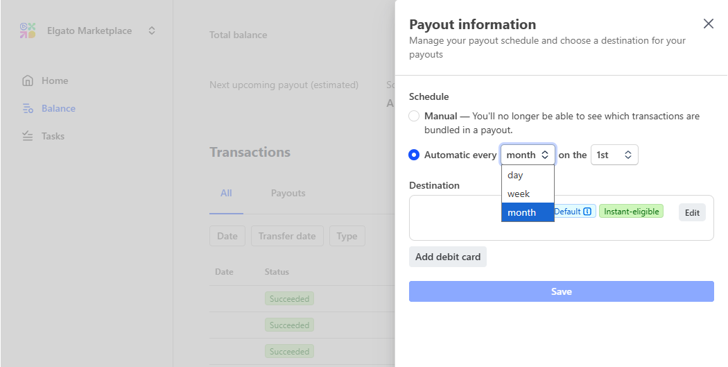 Once everything is set, Stripe will deposit your earnings from Elgato Marketplace directly into your bank account based on the payout schedule you choose.