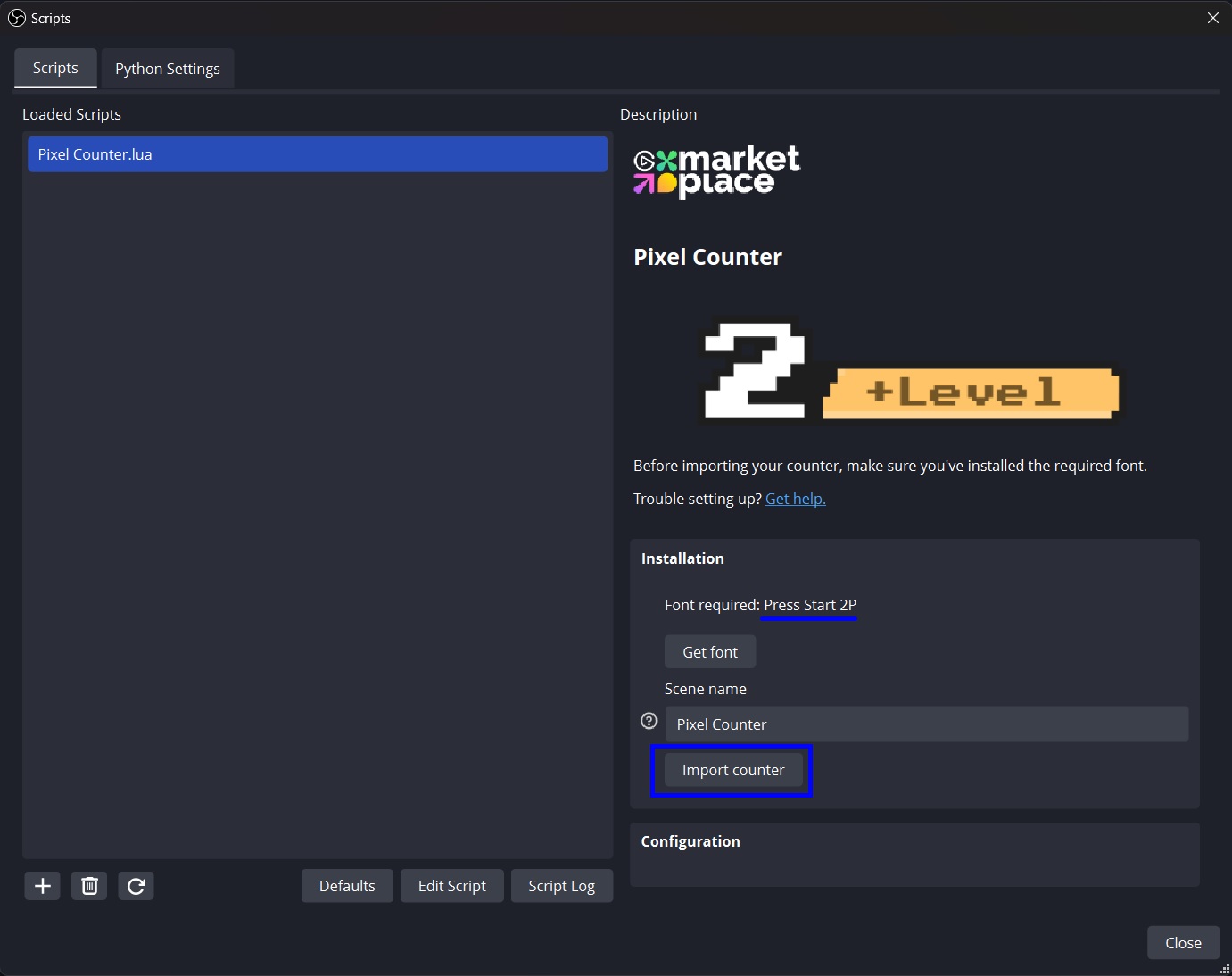 - Verify that your Font is listed and the URL is working and then Import your Counter