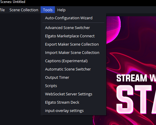 - In OBS Studio, select "Tools", and then "Elgato Marketplace Connect".