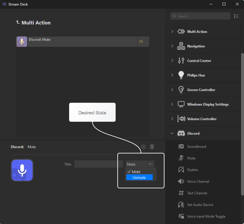 The following image shows the Discord "Mute" action which has two states, "Mute" and "Unmute".